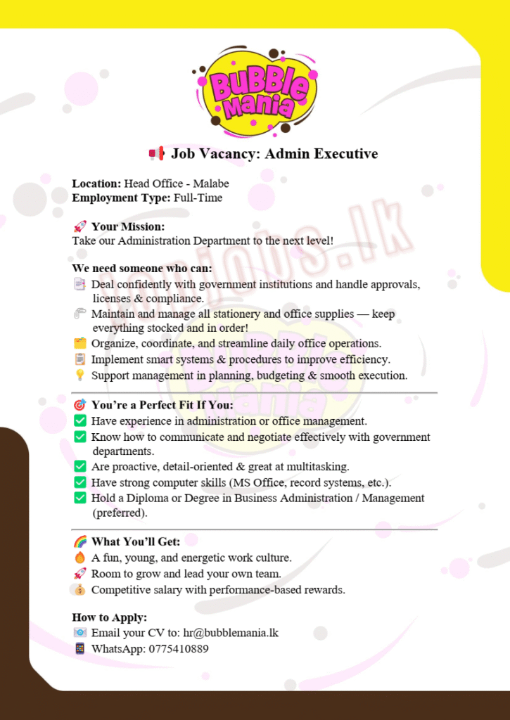 • Maintain and manage all stationery and office supplies — keep everything stocked and in order!